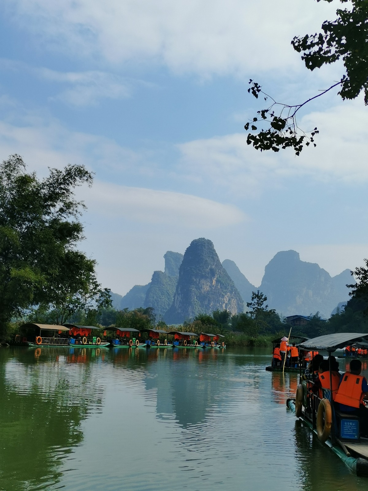 两岸青山花影秀,一林绿树鸟声柔。